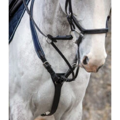 Rambo Micklem Breastplate features an ergonomic design in a three-point elasticized breastplate offering maximum adjustment possibilities on the sides of the neck, underbelly strap and detachable martingale attachment. This breastplate also features an extra removable safety strap to clip across withers of the horse for a grab strap. Top clips attach to d-ring of the saddle or there are included attachments for the stirrup bars which give a safer and more secure attachment point without damaging the saddle. The Micklem breastplate is thoughtfully designed to provide the best in safety and comfort for jumping and cross country.