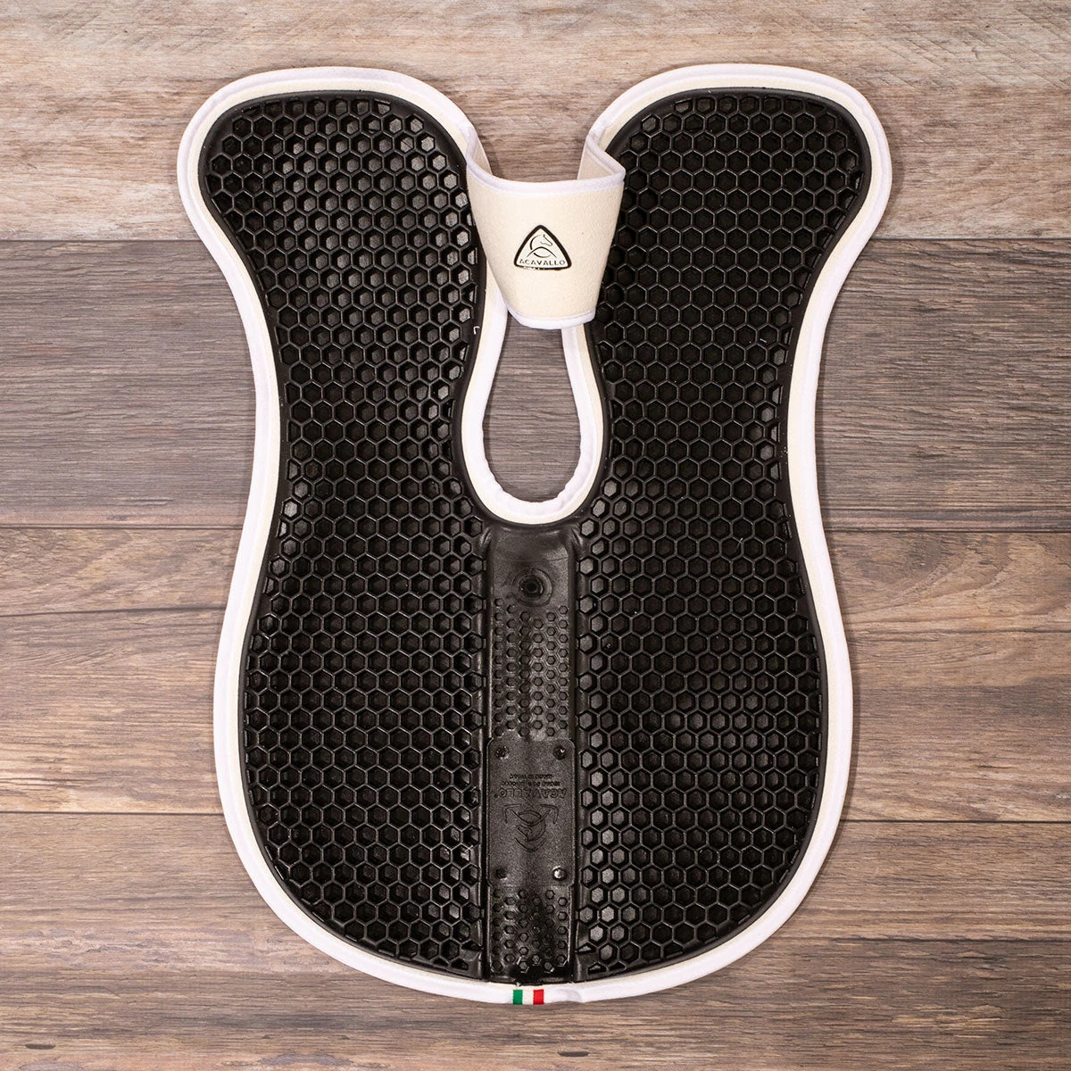 Acavallo Withers Free Hexagonal Soft Gel Pad combines the non-slip and shock-proof properties and breathable properties of the Hexagonal Gel pads Acavallo with a micro-pile lining in the lower part. Because of its hexagonal gel structure, air is compressed within the cells of this non-slip pad and is expelled as the horse moves creating a cushion under the saddle. The Acavallo Classic Gel is hypoallergenic, non-toxic and does not react negatively in contact with the skin, characteristics that allow the pad to be used directly in contact with it.
